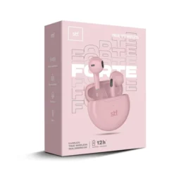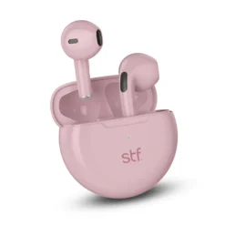 Audifonos Bluetooth 5.0 STF ST-E16109 Color Rosado Bateria Hasta 12 Horas (3 horas continuas + 3 cargas extra con estuche cargado).
