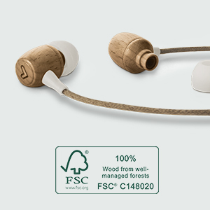 Auriculares ecológicos elaborados con materiales naturales y respetuosos con el medio ambiente. Su cuerpo de madera de haya procedente de bosques sostenibles, con certificación internacional FSC, y su cable de fibra de cáñamo orgánico ofrecen un sonido más nítido y profundo.