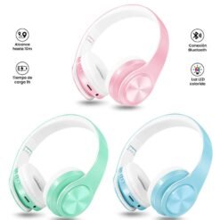 Audifonos Bluetooth B39 Colores Mate con Luz LED,Micro SD,Funcion Contestar Llamadas, Aux 3.5mm Recargables