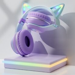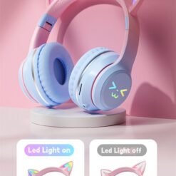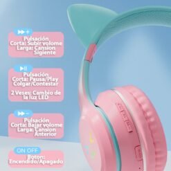 Auriculares inalámbricos de alta fidelidad con oreja de gato, auriculares para juegos Bluetooth con micrófono con cancelación de ruido, auriculares estéreo de música, compatibles con tarjeta TF Aux para teléfono