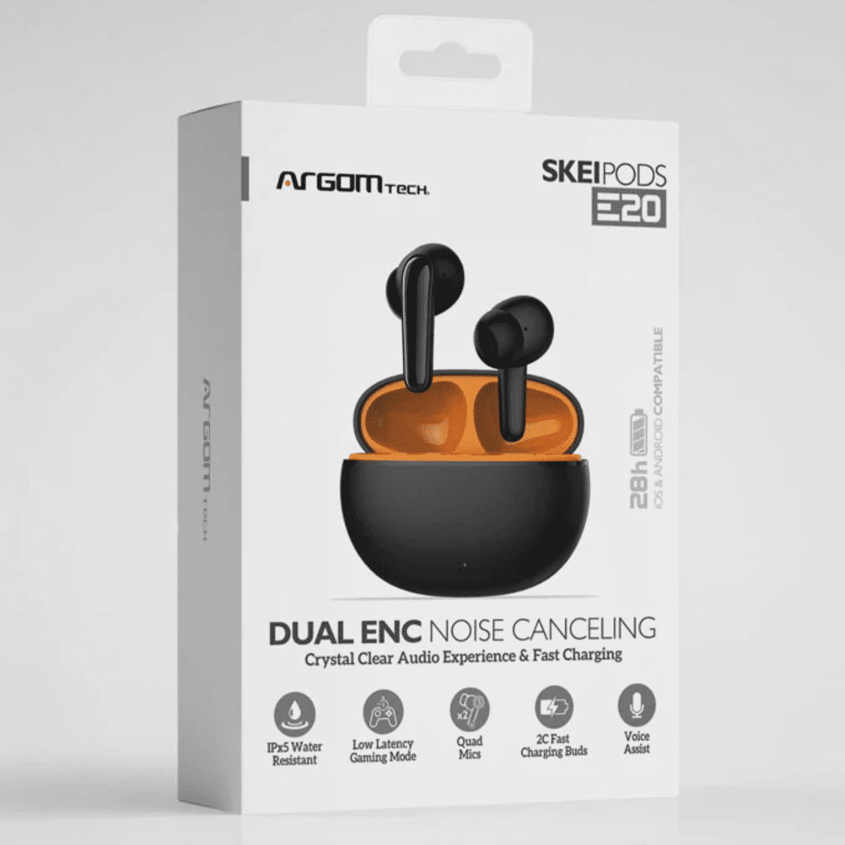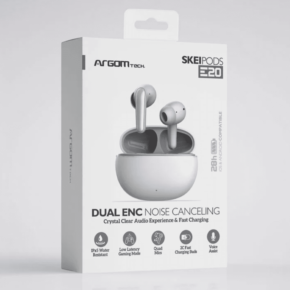 Audifonos Inalambricos ARGOM ARG-HS-5020 SKEIPODS E20, con tecnología Dual ENC, hasta 6 horas de uso continuo, Versión BT 5.3, Resistente al agua IPx5.