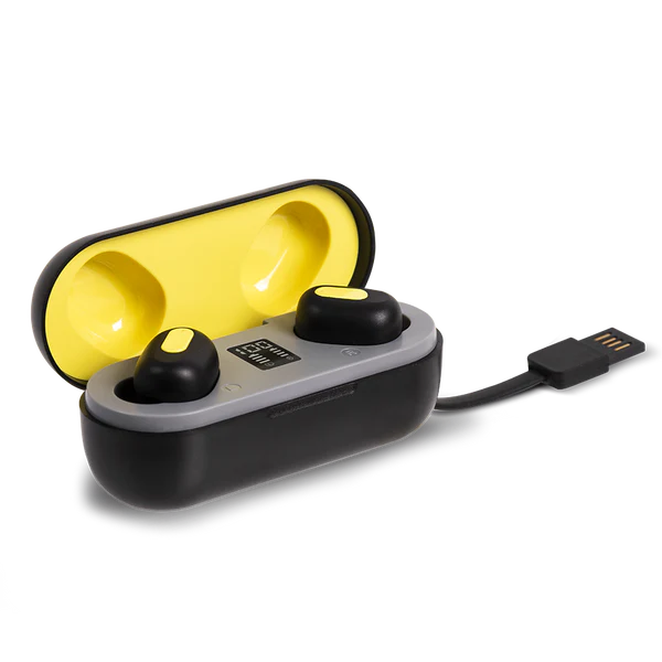 Los audífonos Manos Libres TWS, te permitirán contestar tus llamadas mientras haces ejercicio, caminas o estás ocupado. Tienen una batería de hasta 3 horas de música continua + 5 cargas extras con el estuche cargador, dándote un total de 18 horas de duración. Podrás escoger entre sus distintos colores: negro/amarillo, negro/rosa o negro/azul.