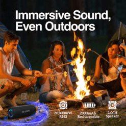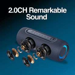 20 W RMS, luces LED multicolor, resistencia IPX5, Bluetooth 5.3, función TWS, batería de 2000 mAh (hasta 10 horas de reproducción) y correa para el hombro. ¡Lleva la fiesta a cualquier parte con sonido y estilo!