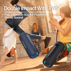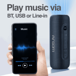 Potencia y estilo se unen en la Bocina Portátil ARGOM RADYON X32, un dispositivo en color negro diseñado para llevar la música a cualquier lugar. Con 20 Watts RMS de potencia, esta bocina ofrece un sonido potente y claro, ideal para fiestas, reuniones o actividades al aire libre. Su espectáculo de luces LED multicolor sincronizado con la música crea una atmósfera visual dinámica, mientras que su resistencia IPX5 al agua y al polvo la hace perfecta para uso en exteriores. Equipada con Bluetooth 5.3, una batería de 2000 mAh que ofrece hasta 10 horas de reproducción continua y la función TWS para conectar dos bocinas y disfrutar de sonido estéreo, esta bocina es tu compañera ideal para cualquier ocasión. Además, incluye una correa para el hombro para mayor comodidad al transportarla.