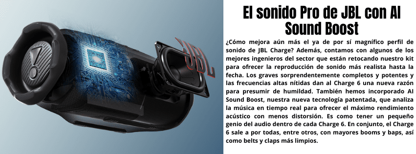 Bocina Portátil JBL Charge 6 Azul – Bluetooth 5.4, 30W de potencia, sonido Pro con IA, 20h de duración, IP68 y función powerbank. ¡Incluye correa y resistencia total!
