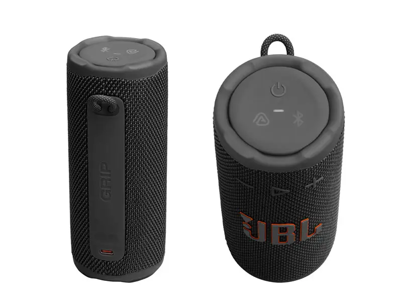 - El JBL Grip para soportar los golpes y las rozaduras de la diversión diaria. Además de su clasificación IP68 de resistencia al agua y al polvo, también es resistente a las caídas: está diseñado para seguir funcionando incluso después de una caída de 1 metro sobre hormigón
