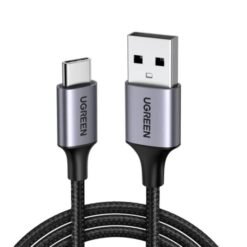 Cable Tipo ´´C´´ UGREEN 60127 USB-A 2.0 a USB-C Trenza de aluminio niquelado, largo de 1.5m, color negro, carga rápida 3A y transfiere datos, material del cable: chaqueta TPE + nailon trenzado, (Compatible con SAMSUNG, HUAWEI,LG, iPhone 15, 15 Plus, 15 Pro, Switch)