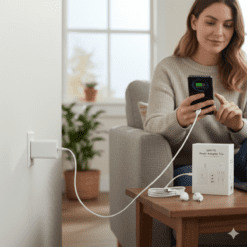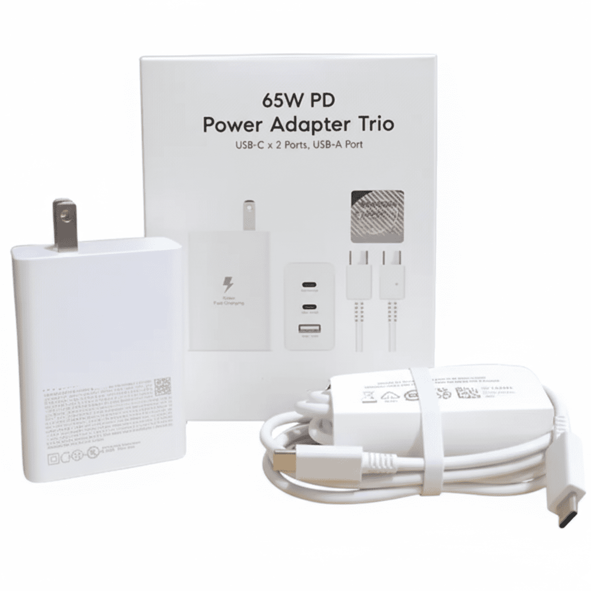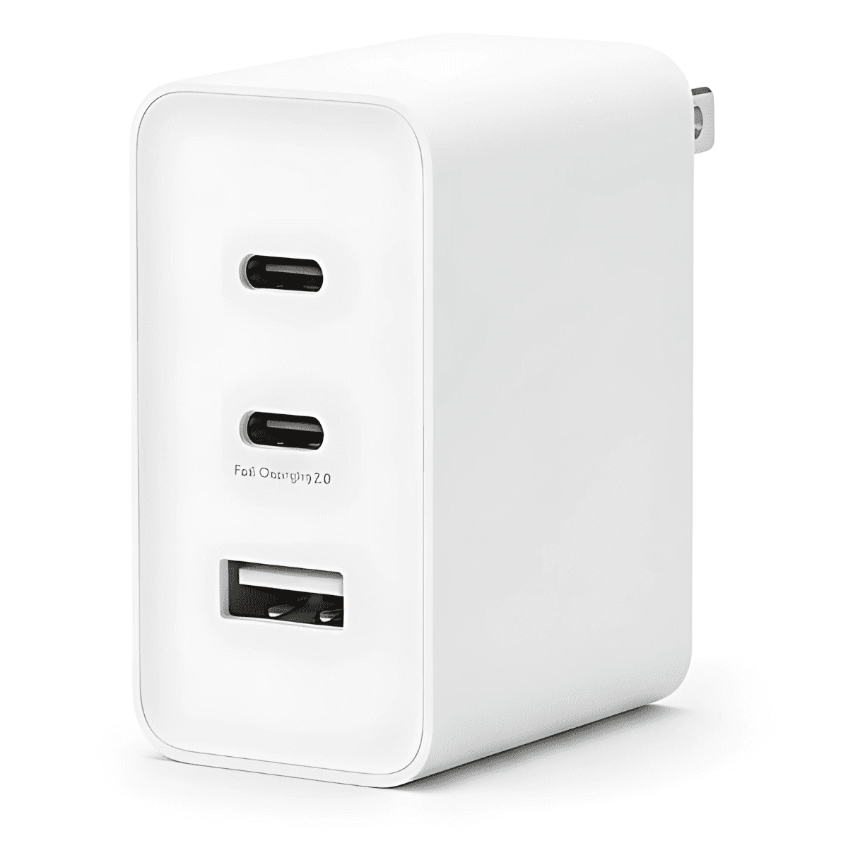 Color Blanco, 2 puertos USB-C y 1 puerto USB-A, 65W, cable incluido tipo C a tipo C.