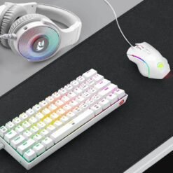 Combo Gaming REDRAGON S129W RGB Color Blanco Teclado Mecánico K630w 60% Interruptor Café +Mouse M607w Con sensor Óptico Pixart P3212, Macros en cualquiera de los botones +Audífonos H350-1 con micrófono desmontable.