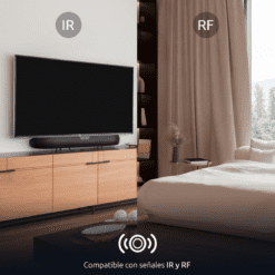 Conectividad IR y RF: Distancia de comunicación de hasta 8 metros (IR) y 100 metros (RF).