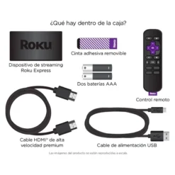 Roku Express incluye un cable HDMI® de alta velocidad y un control remoto simple. No hay tarifa mensual por el equipo, no hay contratos y la búsqueda imparcial hace que sea fácil encontrar entretenimiento de forma gratuita o al menor costo.
