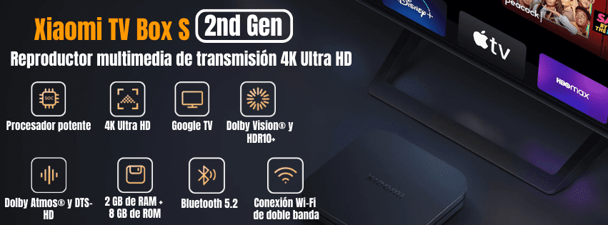 Xiaomi TV Box S 2da Gen MDZ-28-AA – Streaming 4K HDR, Google TV, Dolby Audio, WiFi/Bluetooth. Convierte tu TV en inteligente. ¡Incluye control remoto y todos los accesorios!