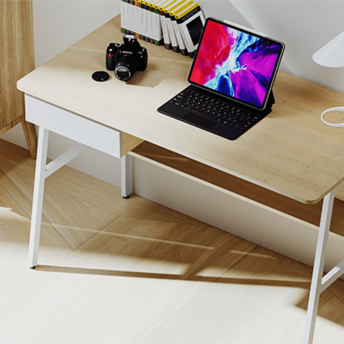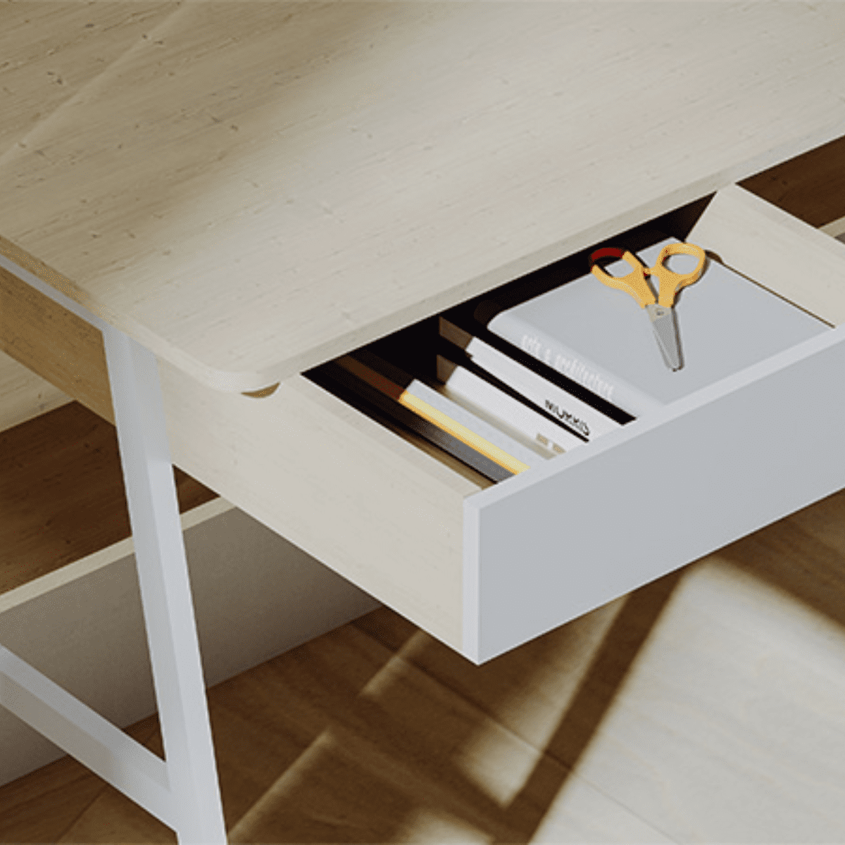 -Cuenta con una gaveta de almacenamiento para mantener bien organizados los elementos esenciales diarios de la oficina.