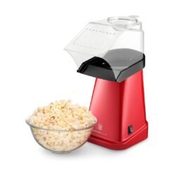 Tiene una salida de vapor que no permite que la humedad quite el crujido de las palomitas de maíz e incluye una taza dosificadora, que se puede utilizar como un compartimento de mantequilla.