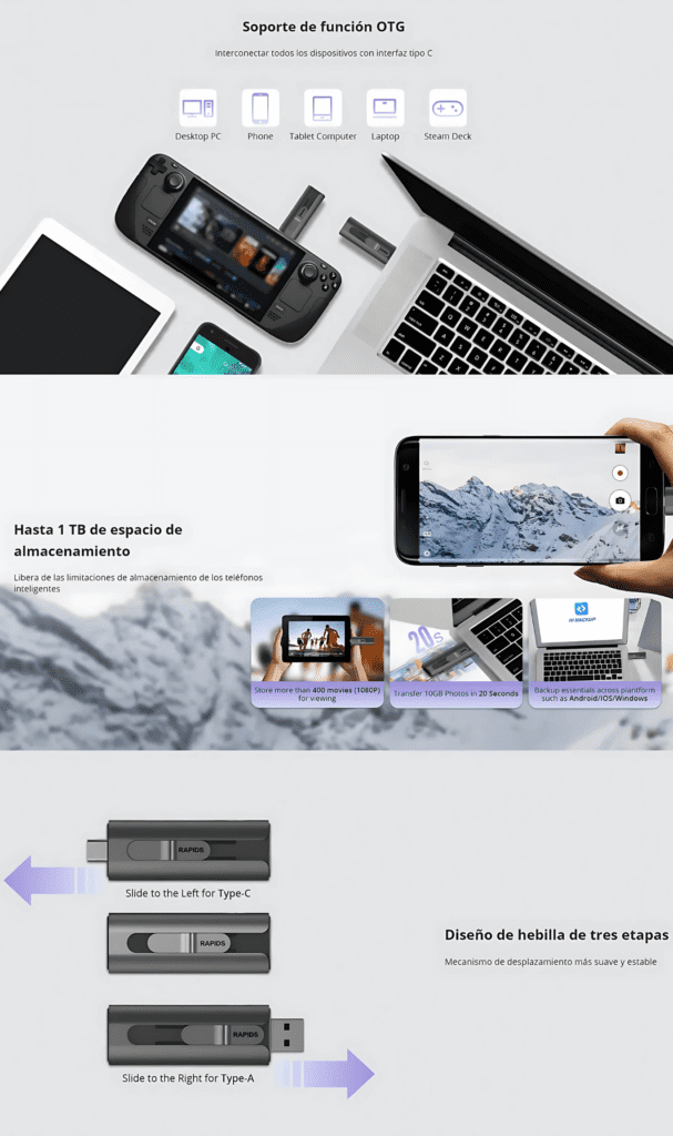 ✔ Transferencias rápidas de archivos grandes (videos 4K, fotos RAW, backups).
