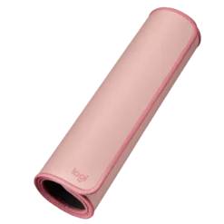 Este es el mouse pad Desk Mat Logitech 956-000048 de la serie Studio. Es grande (300mm x 700mm), color Rosado Oscuro, con diseño resistente a salpicaduras y base antideslizante. Tiene un grosor de 2mm y está hecho de 100% poliéster reciclado. Los bordes no se deshilachan gracias a la combinación de nylon y poliéster. La base antideslizante está hecha de 72% caucho natural, lo cual puede causar reacciones alérgicas en algunas personas. Perfecto para un escritorio elegante y funcional.
