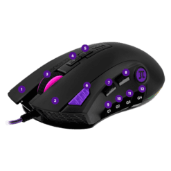 IMPON TU ESTILOEste ratón programable de 12 botones cuenta con teclas para macros integradas, más una tecla de disparo peligrosamente certera |