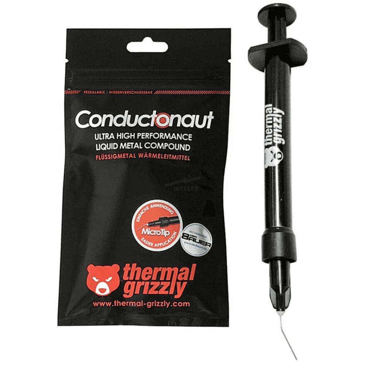 Pasta térmica para procesadores THERMAL GRIZZLY TG-C-001-R, Metal Liquido, Conductonaut, Mayor Contenido de Indio, Aplicación óptima con Aguja de Plástico, Conductividad Térmica Ultraalta, 1 Gramo, Color Negro en Jeringa.