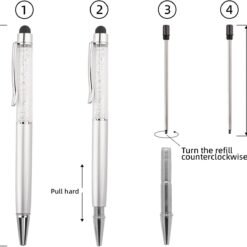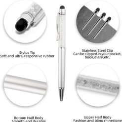 - Diseño brillante: el diseño de cola de bolígrafo tiene un cabezal de pantalla táctil de goma, suave y sensible, se puede utilizar directamente en cualquier momento, en cualquier lugar, juega juegos sin miedo, la mitad del bolígrafo capacitivo está llena de cristales brillantes, hace que tu bolígrafo se vea más hermoso y encantador, una variedad de colores diferentes para satisfacer tus diferentes preferencias.