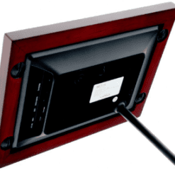 La pantalla táctil de alta definición le permite al usuario visualizar cada imagen con máxima nitidez desde todos los ángulos. El marco exterior está elaborado con madera natural; en la parte posterior incluye un soporte desmontable y un agujero, de modo que tienes la flexibilidad de colocarlo sobre el escritorio, una repisa o si prefieres, colgarlo en la pared. Cuenta con una ranura para tarjeta SDTM y un puerto USB para almacenar hasta 16GB de imágenes, videos y música directamente en la memoria interna del marco. Una de las características más increíbles es la posibilidad de transferir inalámbricamente imágenes capturadas por tu dispositivo móvil al portarretrato en forma instantánea desde cualquier lugar.