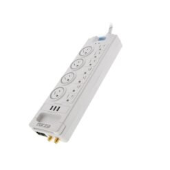 Con luz LED de estado, 3 puertos usb de carga rápida 3.4ª, protección para línea telefónica, coaxial y de red, enchufe plano de 90°,toma corrientes totalmente giratorios, compuesto por material retardador de llama, se instala fácilmente a una pared, organizador de cables.