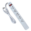 Diseño blanco, 5 salidas con supresor de picos, interruptor de encendido/apagado y montaje en pared. Ideal para proteger tus dispositivos eléctricos. ¡Seguridad y funcionalidad en un solo producto!