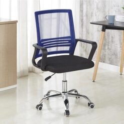 | Características | – Respaldo Mesh para mejor ventilación – Reposabrazos – Asiento espumado de alta densidad – Tapizado en tela color negro (asiento) – Ajuste de altura por medio de shock – Base cromada de 5 rodos – Soporta hasta 225 libras |