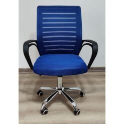 Con respaldo mesh azul para mejor ventilación y reposabrazos, esta silla ofrece comodidad gracias a su asiento espumado de alta densidad y tapizado de tela color azul. Ajuste de altura por medio de shock y base cromada con 5 rodos. Soporta hasta 225 libras.