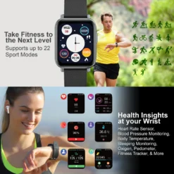 Alcanzar sus objetivos de salud puede volverse tedioso y engorroso. Sin embargo, con los relojes inteligentes y las bandas inteligentes de ArgomTech, ahora puede lograr sus objetivos en un abrir y cerrar de ojos. El reloj inteligente S50 incluye características excelentes como sensor de frecuencia cardíaca, control de la presión arterial, temperatura corporal, control del sueño, oxígeno, podómetro, rastreador de actividad física y mucho más. También es resistente al polvo y al agua con una clasificación IP68. Equipado con una pantalla Full Touch HD de 1,7” con vidrio templado y una duración de la batería de hasta 25 días, ¡Lo mantendrá enfocado en el estilo de vida saludable que desea lograr!
