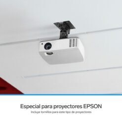 Con este soporte, instala tu proyector en el techo y ten el espacio óptimo para llevar acabo tus reuniones de trabajo o de entretenimiento. Tiene un sistema de agarre por medio de brazos extensibles; gracias a esto, es compatible con proyectores de diversos tamaños de la marca Epson*. Además, incorpora una doble articulación que le da movilidad para ajustar la posición de la proyección en el ángulo más adecuado. Es de excelente calidad; está fabricado en acero al bajo carbón que le brinda alta resistencia, y se incluyen los tornillos y taquetes necesarios para instalarlo.