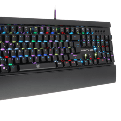 Teclado GAMING PRIMUS BALLISTA 200S PK-201S Iluminacion RGB Configurable,Teclas con Avanzado Interruptor Mecanico Rojo Primus para Pulsacion fluida y lineal,Tecnologia Anti-Ghosting,garantiza la ejecucion de cada comando al presionar Varias Teclas,Material Plastico ABS sobre estructura de metal,Reposamuñecas Removible,Cable Trenzado,Asignacion de Macros a cualquier tecla,Teclas de Doble Inyeccion con Iluminacion de Fondo y Caracteres,Kit con 8 Teclas de Repuesto color Morado para Facil Identificacion de Comandos y herramienta para reemplazarlas,Se puede descargar la aplicacion PRIMUS AR y escanear al guerrero legendario para ser parte de la historia