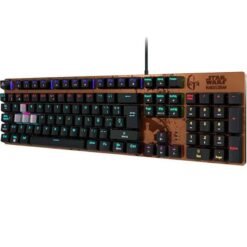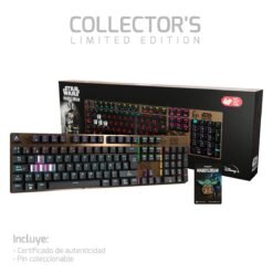 Con Diseño de STAR WARS THE MANDALORIAN,Tecnología Anti-Ghosting,con Interruptor Mecánico Rojo,20 Patrones de Iluminación,Asignación de Macros a Cualquier Tecla,11 Teclas Multimedia(Incluye Pin de Colección)