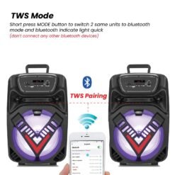 Bocina Portatil SOONBOX S8006 15 Watts RMS 8´´ Color Negro,con Micrófono Incluido Tecnología TWS Bluetooth,Radio,Lector micro SD-USB